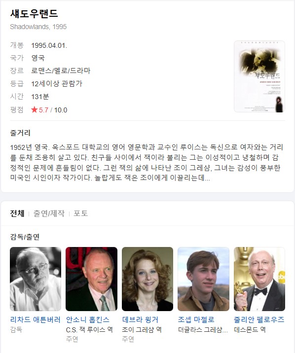 [¿µÈ­-¸á·Î] ¼¨µµ¿ì·£µå.Shadowlands.1993.1080p.ÇѱÛÀÚ¸·