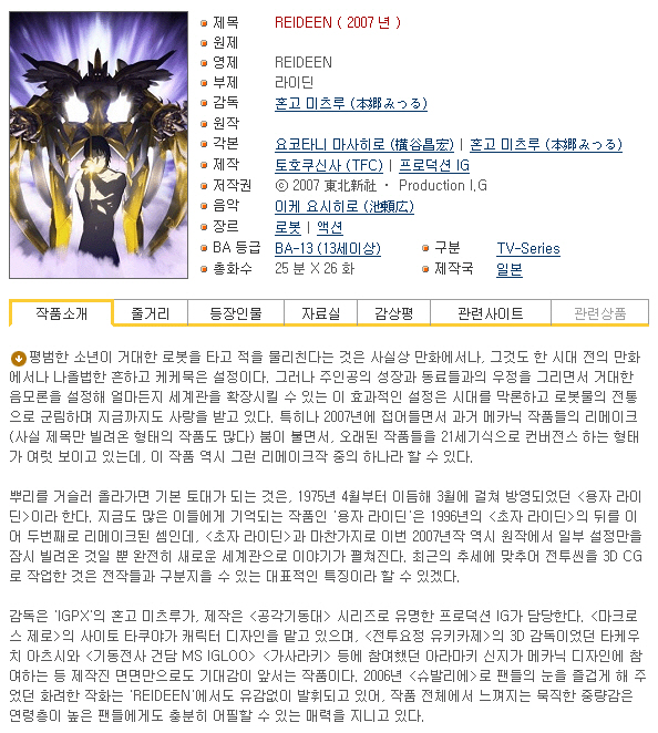 [Àλý] ¶óÀ̵ò (REIDEEN) 01~26¿Ï°á! -Ãß¾ïÀǸíÀÛ ¸ÞÄ«´Ð ¾×¼Ç-