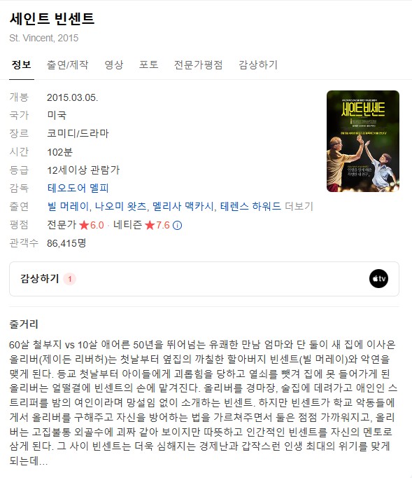 [¿µÈ­-Äڹ̵ð] ¼¼ÀÎÆ® ºó¼¾Æ®.St.Vincent.2014.1080p.ÇѱÛÀÚ¸·