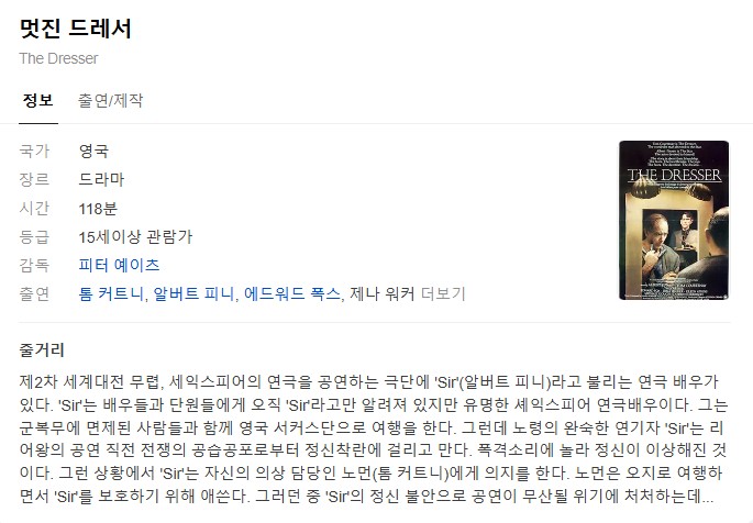 [¿µÈ­-µå¶ó¸¶] ¸ÚÁø µå·¹¼­.The Dresser.1983.720p.ÇѱÛÀÚ¸·