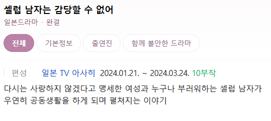 [Àϵå¿Ï°á]¼¿·´.³²ÀÚ´Â.°¨´çÇÒ.¼ö.¾ø¾î.S01.WAVVE.WEB-DL.1080p.H.264.AAC2.0