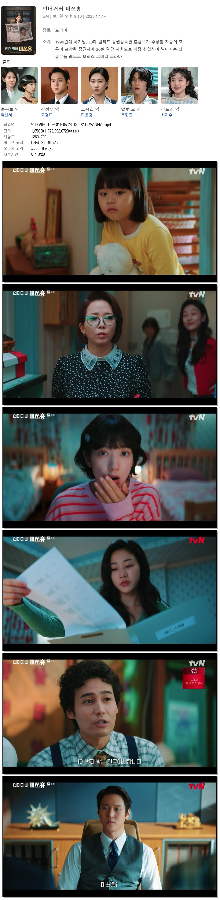 [TVN] ¾ð´õÄ¿¹ö ¹Ì¾²È«.E05.260131.720p.WANNA[¹Ú½ÅÇý, °í°æÇ¥].mp4