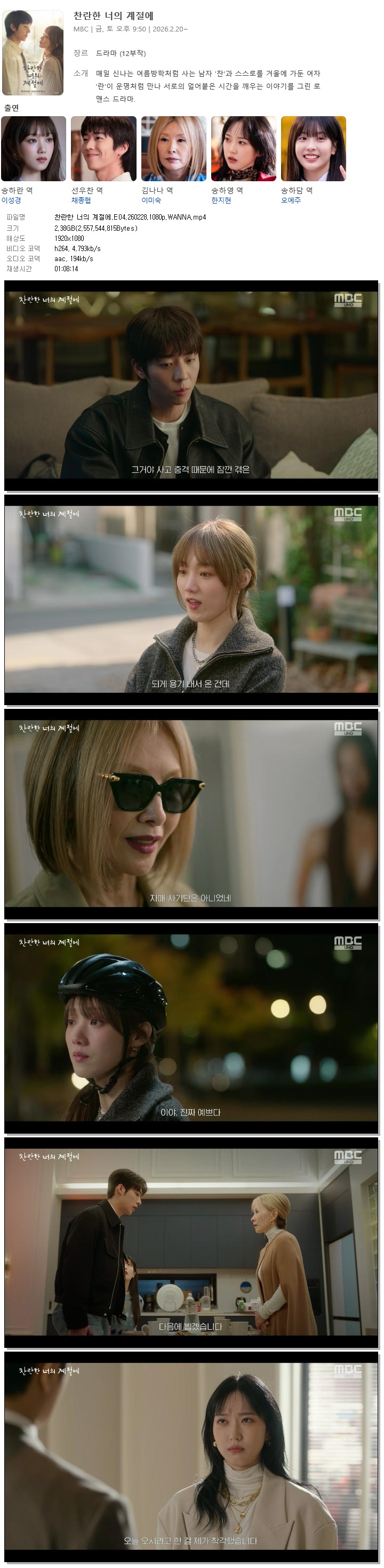 [MBC] Âù¶õÇÑ ³ÊÀÇ °èÀý¿¡.E04.260228.1080p.WANNA[À̼º°æ, äÁ¾Çù].mp4