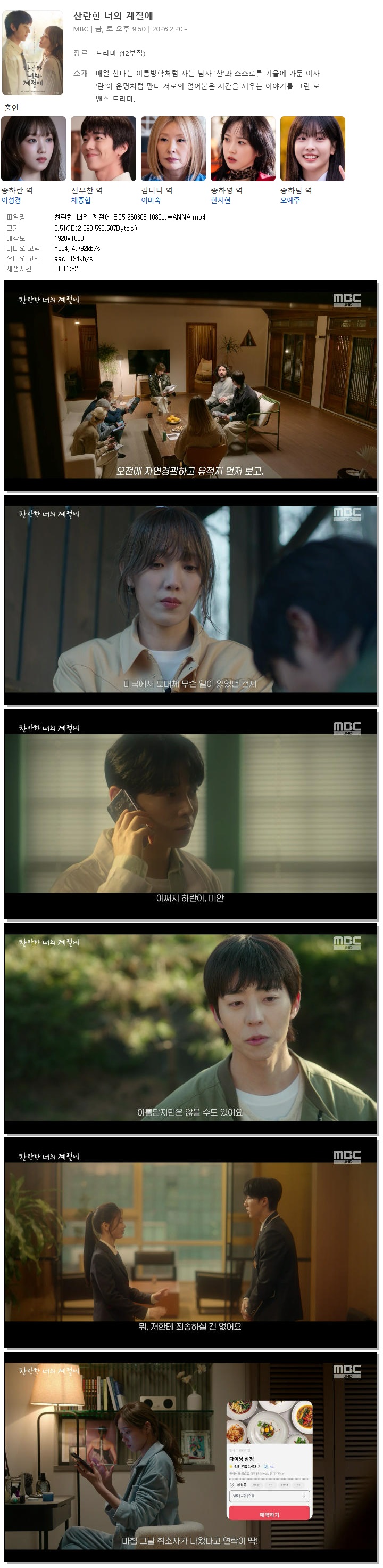[MBC] Âù¶õÇÑ ³ÊÀÇ °èÀý¿¡.E05.260306.1080p.WANNA[À̼º°æ, äÁ¾Çù].mp4