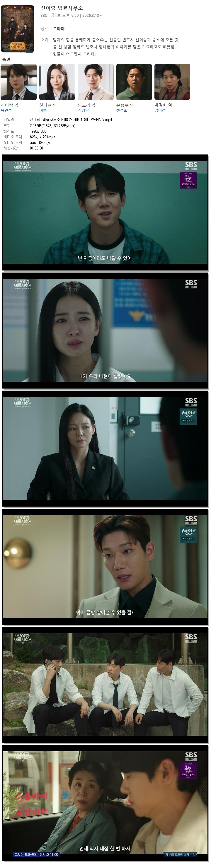 [SBS] ½ÅÀ̶û ¹ý·ü»ç¹«¼Ò.E08.260404.1080p.WANNA[À¯¿¬¼®, À̼Ø].mp4