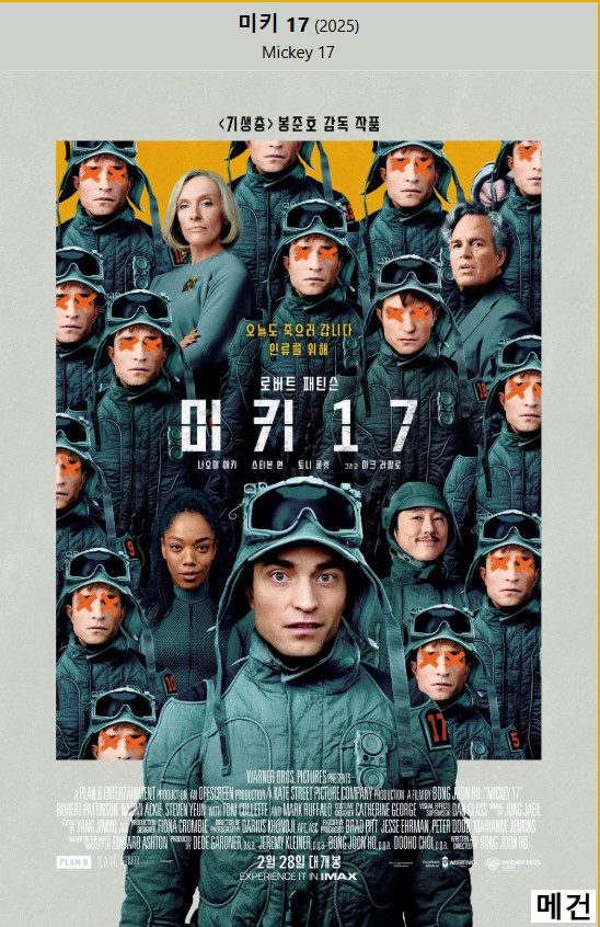 [¹ÌŰ 17] Mickey 17. 2025 (ºÀÁØÈ£ °¨µ¶ ÀÛǰ)