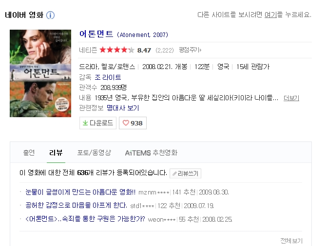 [·£¼±º¢²É³îÀÌ] [µå¶ó¸¶][¾îÅæ¸ÕÆ®] Atonement, º¸»ó°ú ¼ÓÁË¿¡ °üÇÏ¿© / ŰÀÌ¶ó ³ªÀÌÆ²¸®, Á¦ÀÓ½º¸Æ¾îº¸ÀÌ Ã⿬ÀÛ