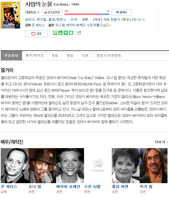 [¿µÈ­] »ç¶ûÀÇ ´«¹° - Cry Baby 1990