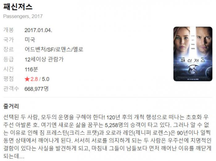 [¿µÈ­] ÆÐ½ÅÀú½º Passengers. 2017 [1080p] [ÀÚüÀÚ¸·]